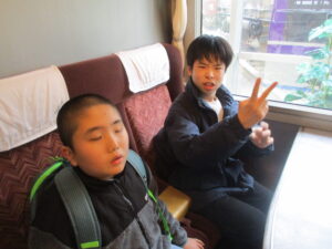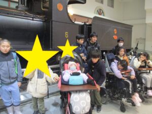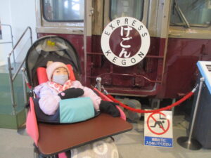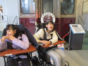 電車の中に入って実際の座席などに座ったりして楽しそうでした♪