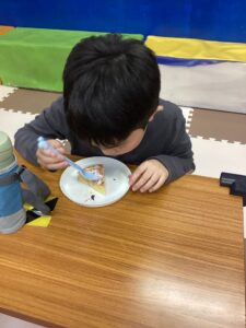おやつを食べた後は…ひなあられ色分けゲームをしました♪