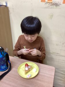 おやつは、お雛様とお内裏様がのったイチゴケーキを食べました♡