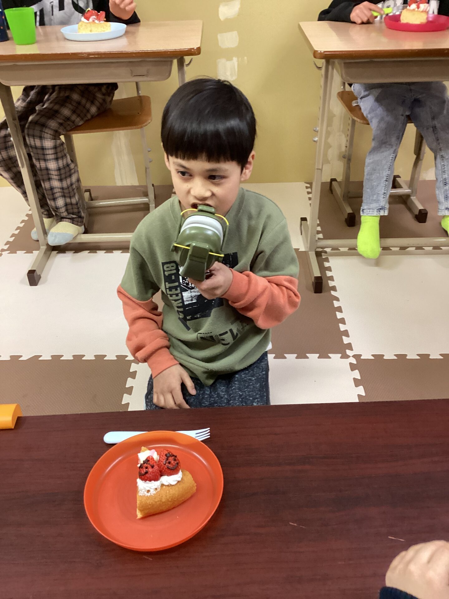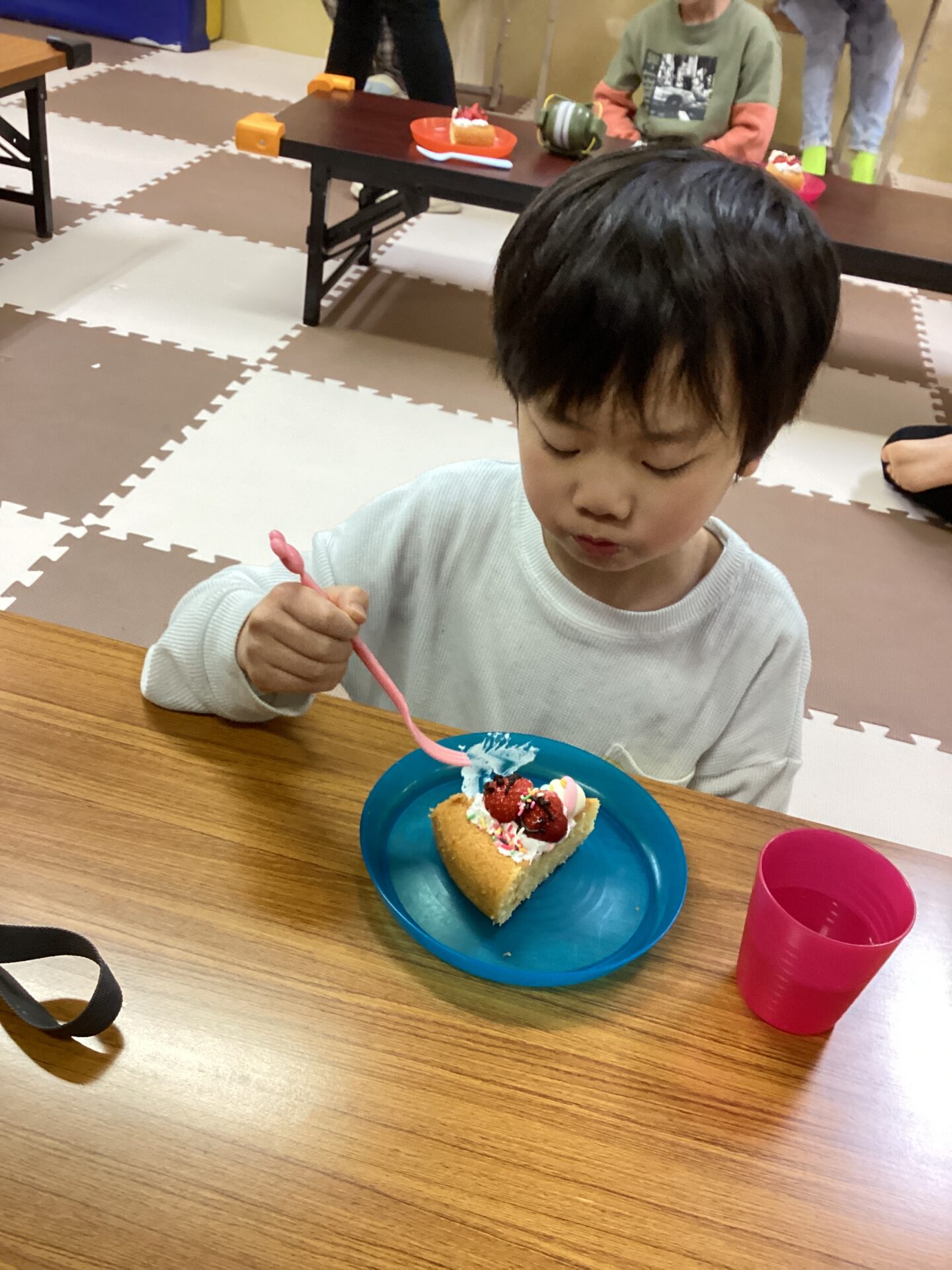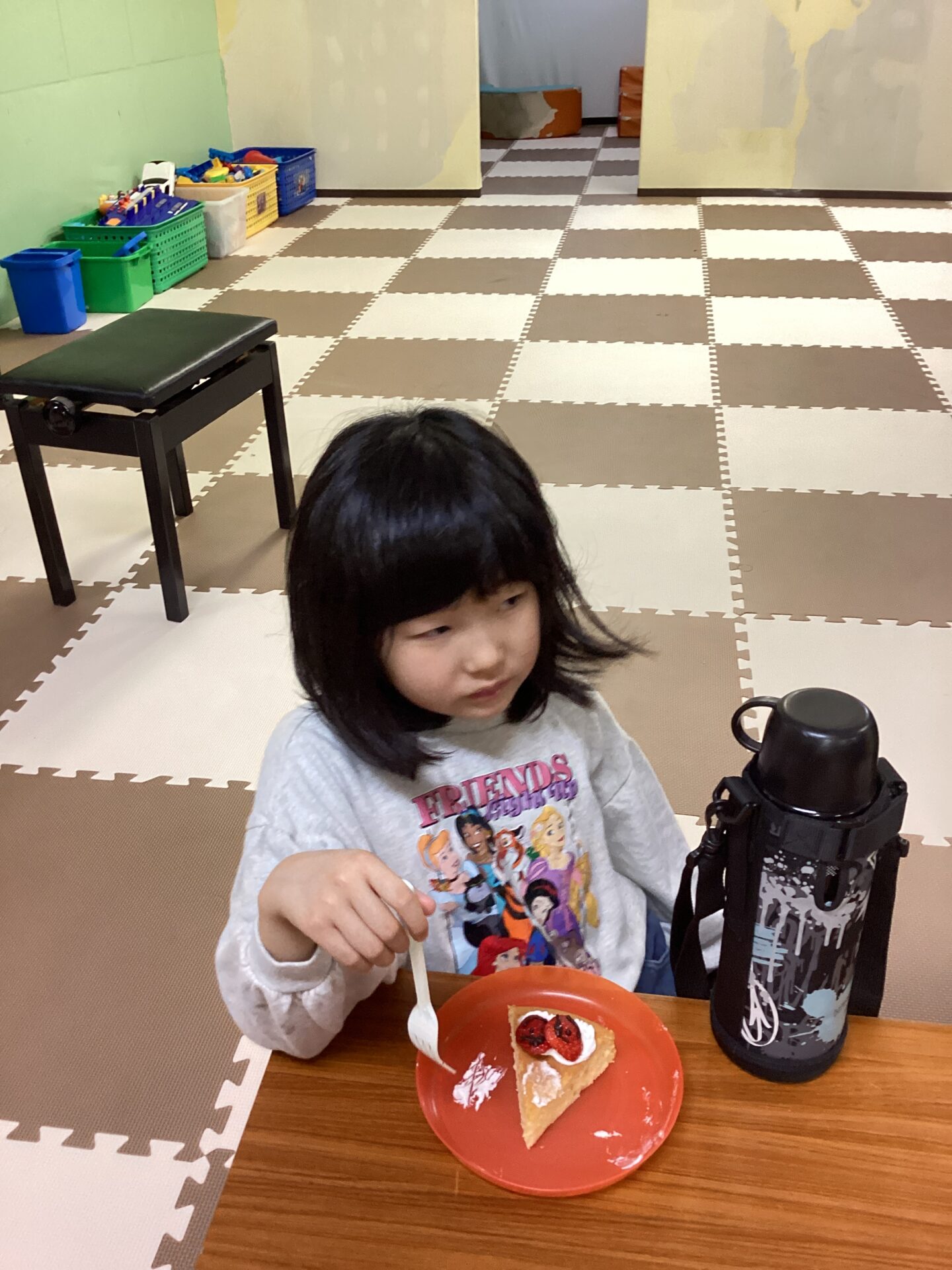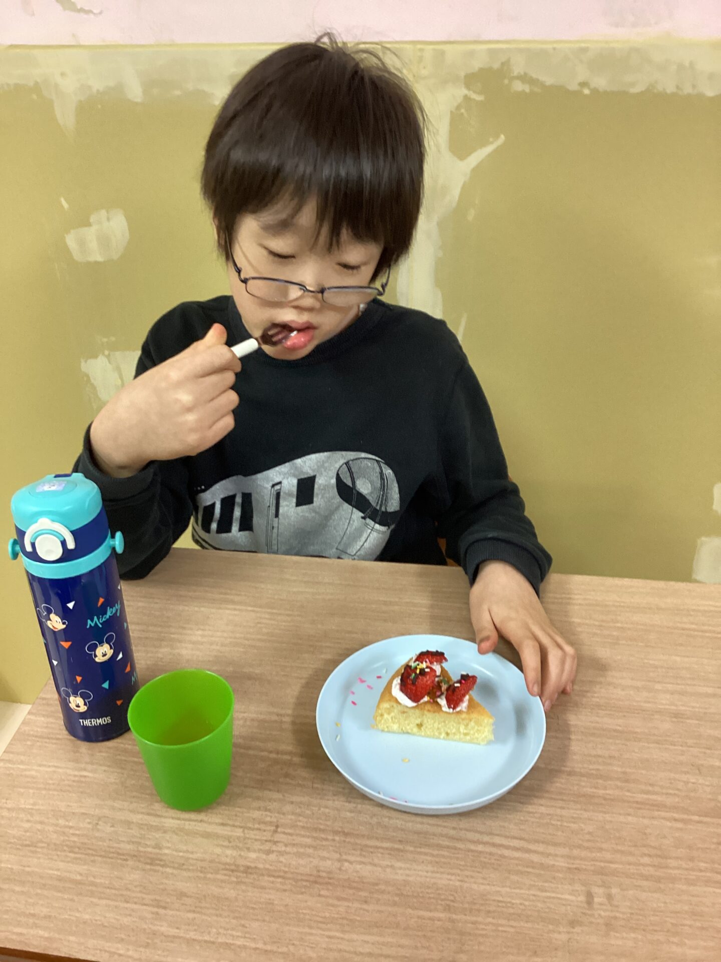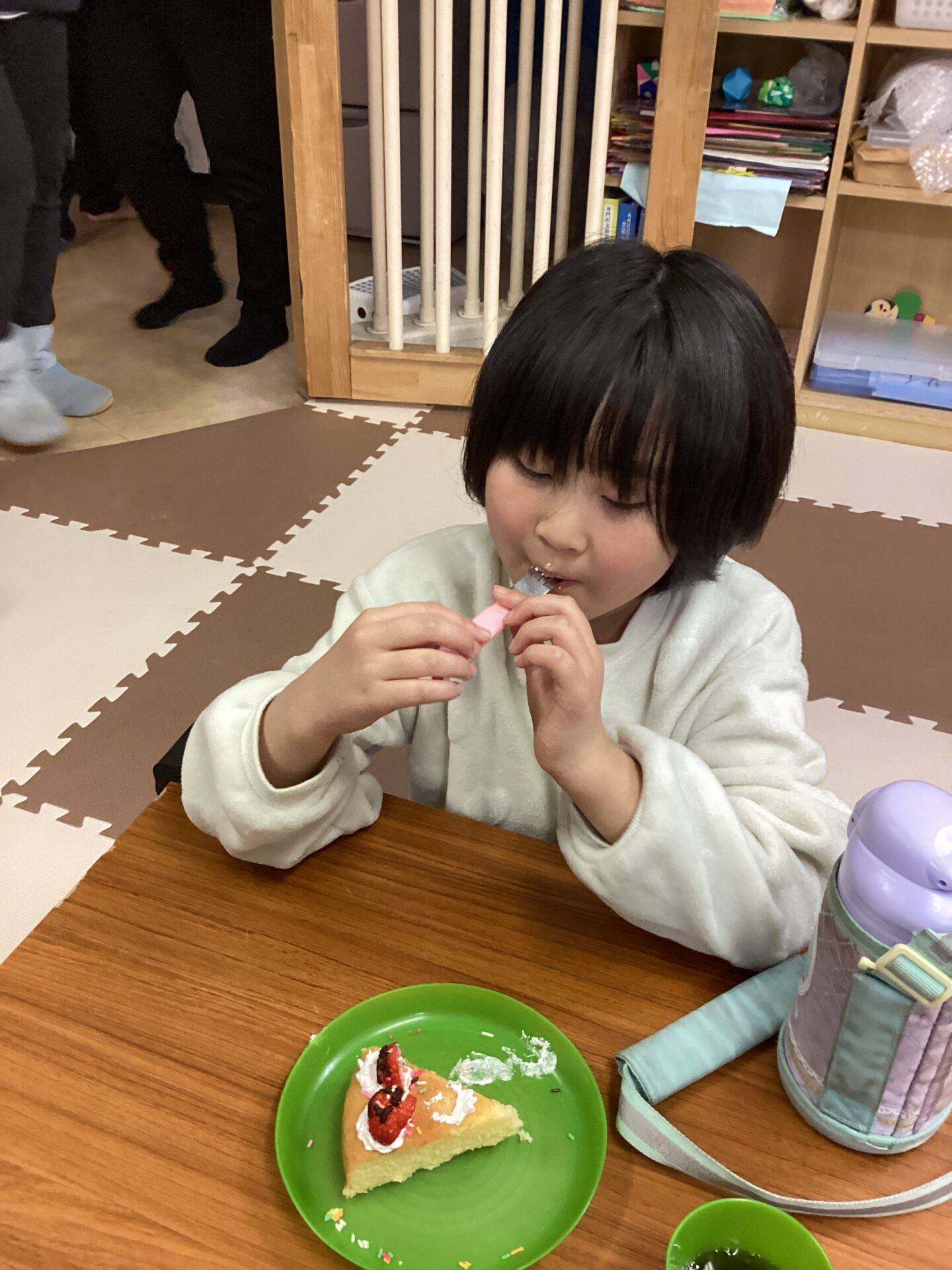 おやつは、お雛様とお内裏様がのったイチゴケーキを食べました♡