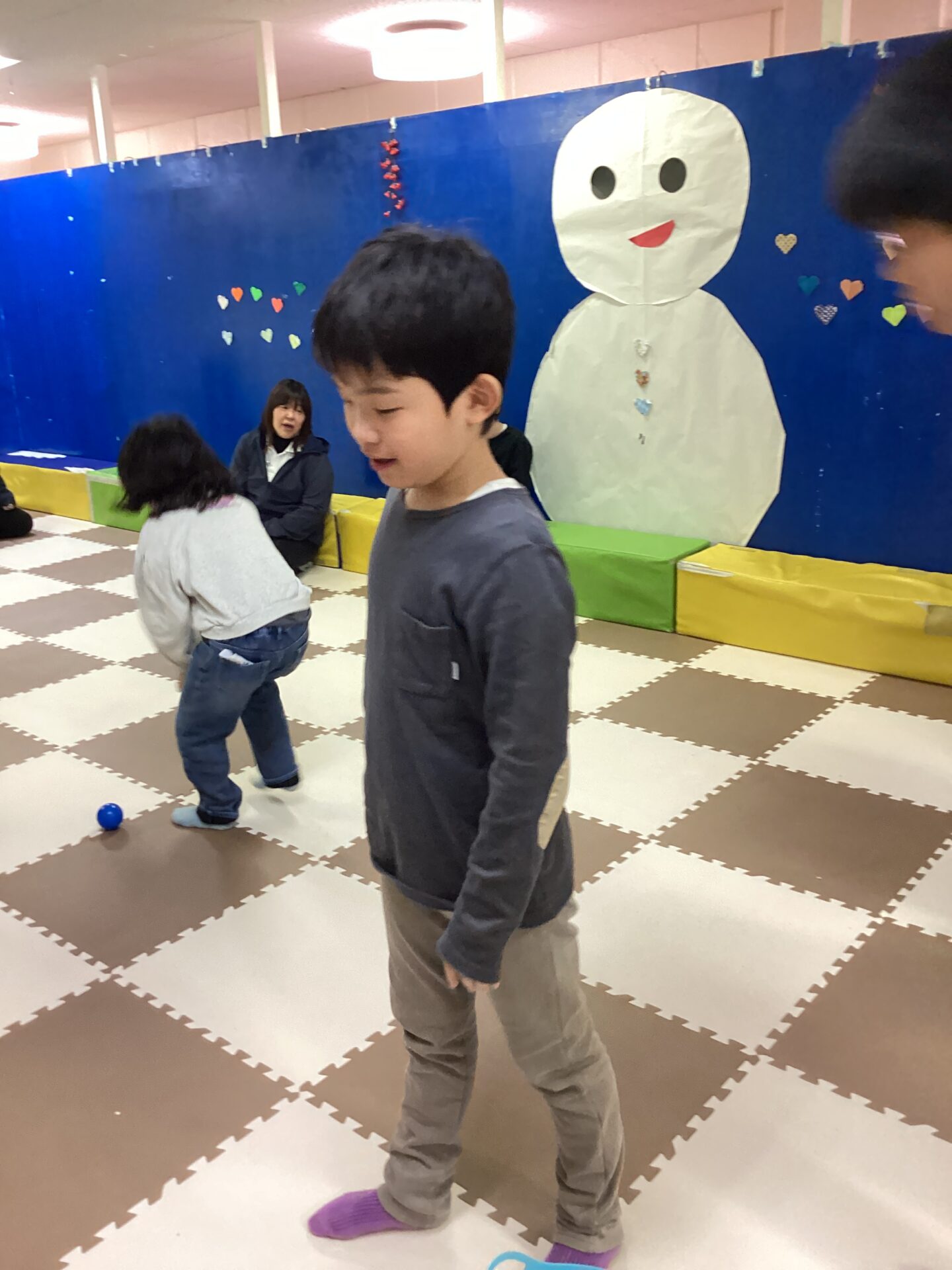 子どもたちに色塗りしてもらった炭治郎と禰豆子の絵をブロックマットに貼り、先生と子どもチームに分かれて勝負しました(^^)/