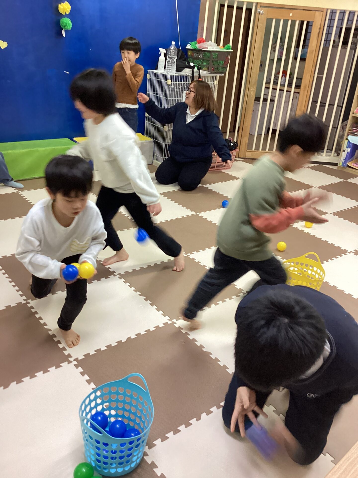 ボールをひなあられに見立てて、かごと同じ色に分けてもらいました!